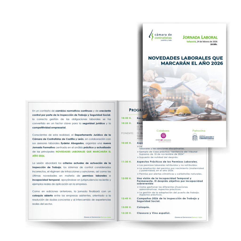 La Cámara de Contratistas de Castilla y León organiza una jornada práctica para analizar las nuevas obligaciones laborales, los criterios actuales de la Inspección de Trabajo y su impacto directo en la gestión diaria de las empresas del sector. Una oportunidad clave para prevenir riesgos, evitar sanciones y resolver dudas reales antes de que los cambios sean exigibles.